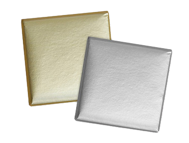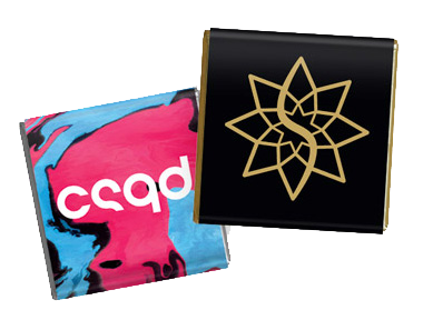 The personalised Napolitain chocolates are made using only our own chocolate, conched in-house by our Belgian born and trained chocolatiers. They are first foil wrapped and then a paper label is folded around the chocolate. On the label we professionally print a full colour design or logo to your liking.